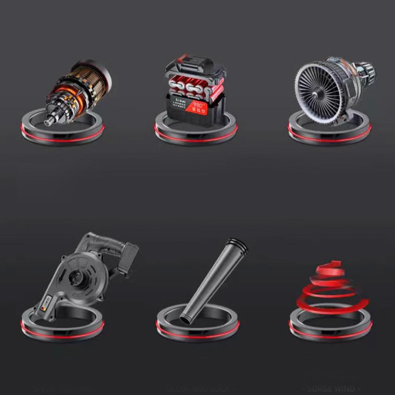 PERFORMANCES ÉLEVÉES : Équipé d'un moteur à noyau en cuivre à haute énergie et de pales de ventilateur turbocompressées, cet outil offre une vitesse à vide de 0 à 16 000 tr/min et un débit d'air de 3 m³. Il élimine rapidement les feuilles, les débris et les résidus d'herbe.
