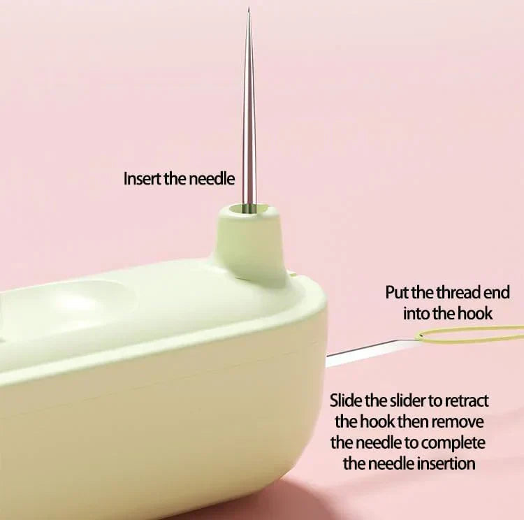 Avec un mécanisme d'enfilage récemment amélioré, cet outil rend l'enfilage plus facile que jamais. Insérez simplement l'aiguille, accrochez le fil et retirez-le – l'enfilage se fait sans effort. Idéal pour ceux qui veulent gagner du temps et éviter la frustration.
