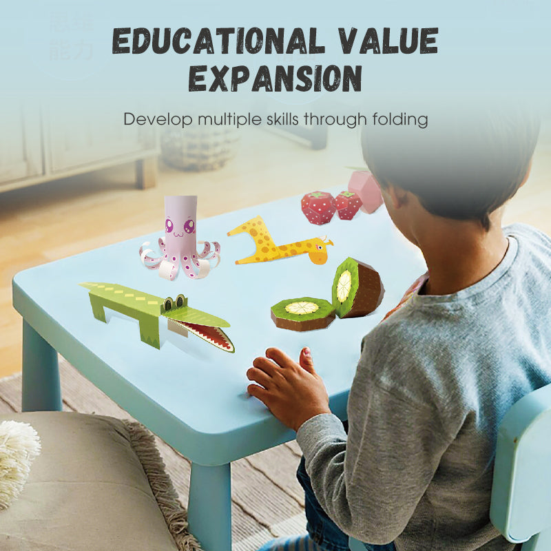 EXPÉRIENCE DE ORIGAMI 3D CAPTIVANTE : Le Livre de Origami 3D Fait à la Main propose une activité manuelle immersive. Avec trois ensembles comprenant 49 motifs uniques, il donne vie à des animaux, des fruits et des formes classiques en 3D. Non seulement il offre des heures de divertissement, mais il stimule également la créativité, la motricité fine et l'imagination spatiale des enfants en transformant du papier plat en modèles 3D détaillés.