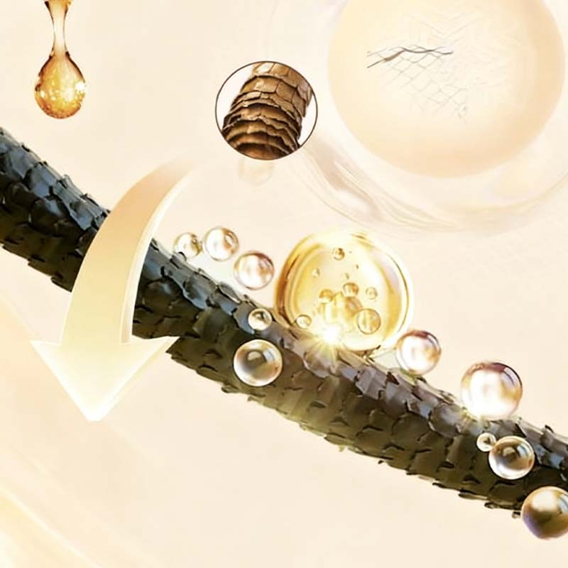 RÉPARATION DOUBLE À LA KÉRATINE: Formulée à base de kératine hydrolysée et de kératine, elle agit en profondeur pour réparer les cheveux abîmés. Cette double action nourrissante renforce la fibre capillaire de l'intérieur tout en scellant la cuticule pour une douceur et une résilience durables.