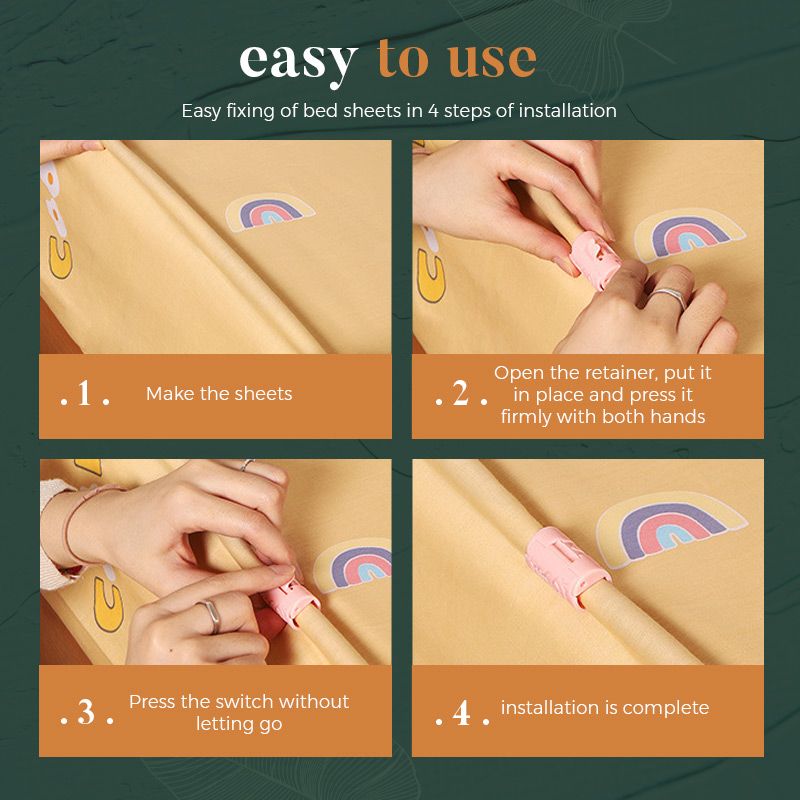 Ces clips maintiennent le drap en place jour et nuit, éliminant ainsi le besoin de réorganiser les draps le matin. Parfait pour les paresseux et les personnes occupées , cela fait gagner beaucoup de temps !