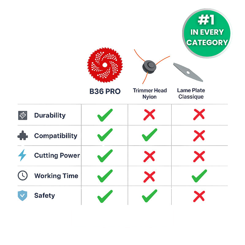 INSTALLATION FACILE – Conçue pour une mise en place rapide, cette lame de scie est compatible avec la plupart des tondeuses de mauvaises herbes. Aucun outil spécialisé n'est nécessaire - il suffit de monter la lame et vous êtes prêt à nettoyer votre cour, ce qui permet de gagner du temps précieux sur la préparation.