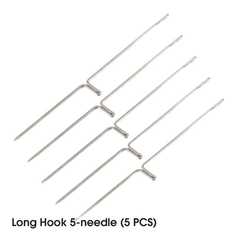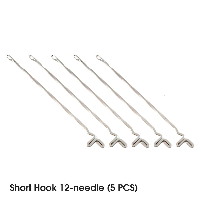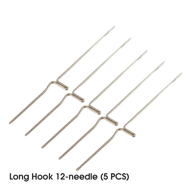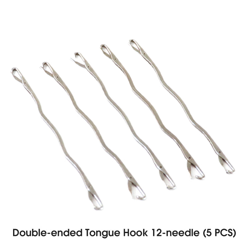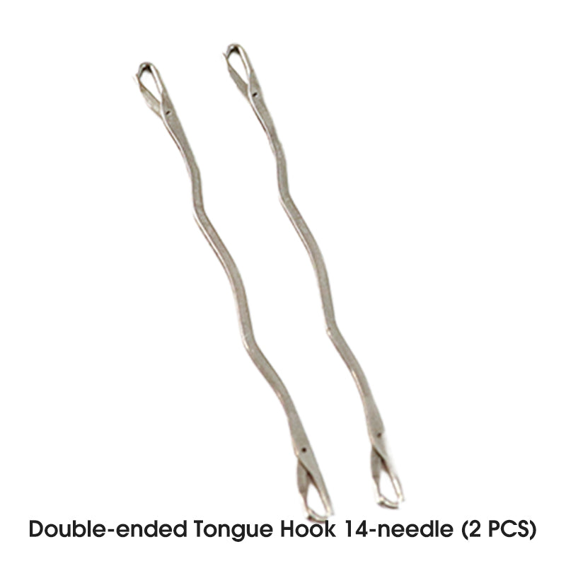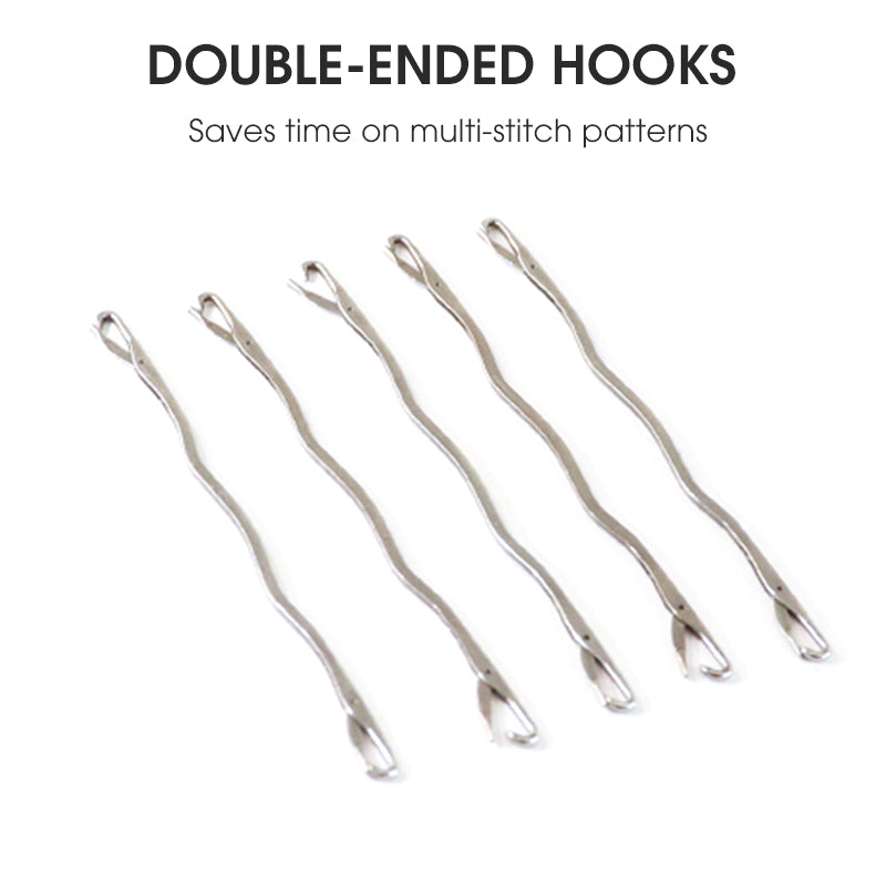 LES CROCHETS À DOUBLE EXTRÉMITÉ OPTIMISENT L'EFFICACITÉ – Les crochets à double tête 12/14 aiguilles permettent de changer instantanément de taille sans changer d'outil. Gain de temps sur les motifs à points multiples.