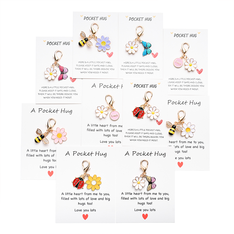 Le paquet comprend : 1/10 * Porte-clés et carte mignons en forme d'insecte et de marguerite