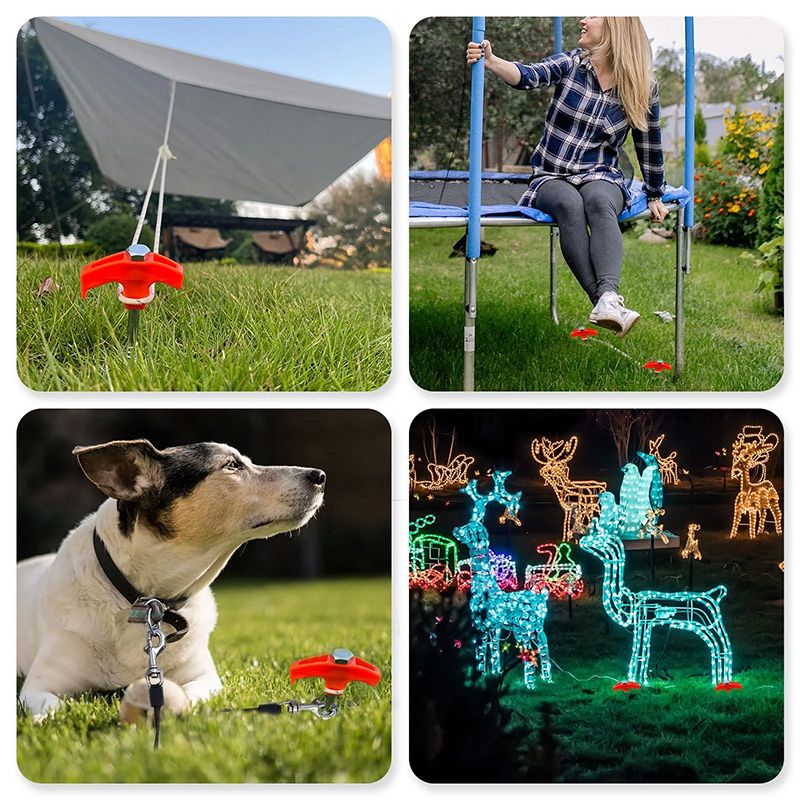 [POLYVALENT] : Que vous cherchiez à sécuriser votre tente, auvent, pop-up, canopy, gazebo, ou même à sécuriser la laisse de votre chien, les décorations de Noël, les décorations du nouvel an, les piquets de tente percutables vous couvrent.