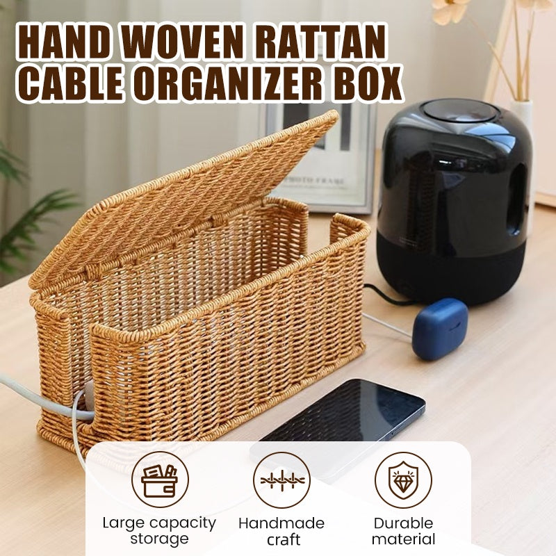 Le paquet comprend : 1 * Boîte de rangement pour câbles en rotin tissé à la main avec couvercle