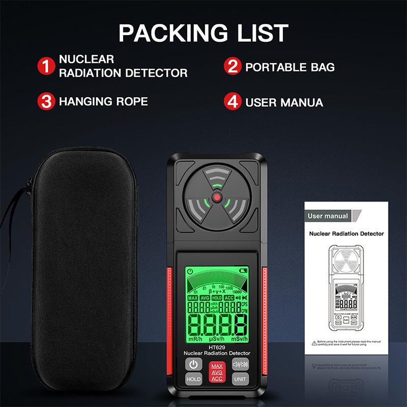 Le forfait comprend: 1 compteur EMF Multi - Champs ht672 pour EF, RF, MF, 1 manuel