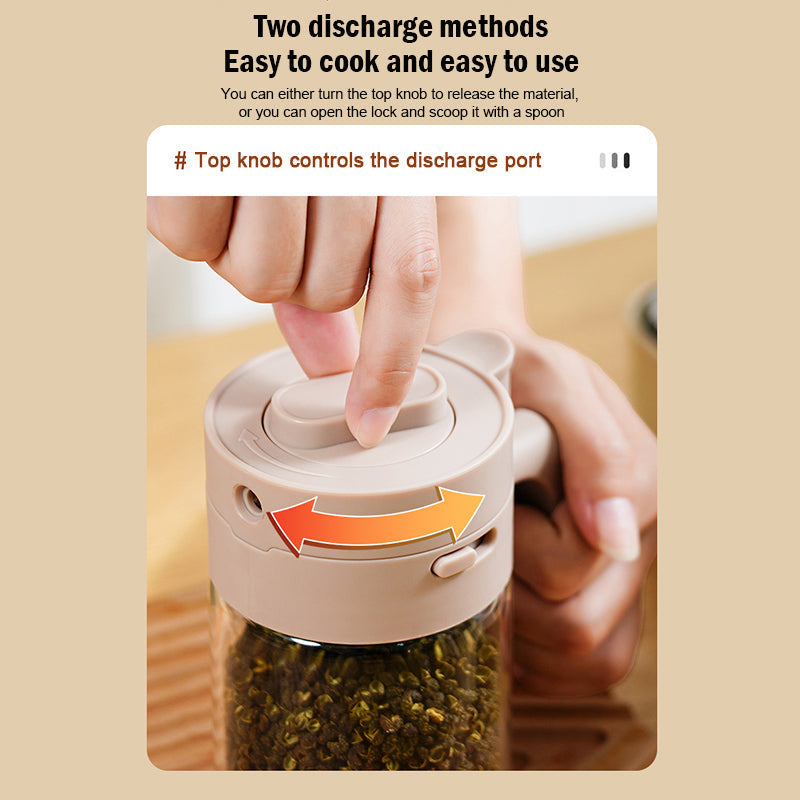 ✅️ 2 MODES D'UTILISATION: Le pot à épices avec cuillère vous offre une flexibilité inédite. Choisissez parmi deux options de distribution : tournez le bouton pour verser les épices ou ouvrez le loquet pour utiliser la cuillère fournie. Améliorez dès maintenant vos talents culinaires !