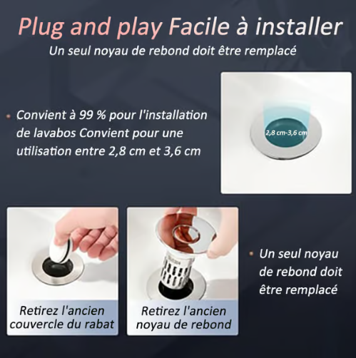 Le drainage efficace et l'anti-bouchage deviennent le nouveau standard pour votre salle de bains. Choisissez notre bouchon de lavabo. Grâce à son design avancé, il garde votre évier propre et réduit les besoins d'entretien, vous permettant de profiter d'un environnement de salle de bains frais et confortable.