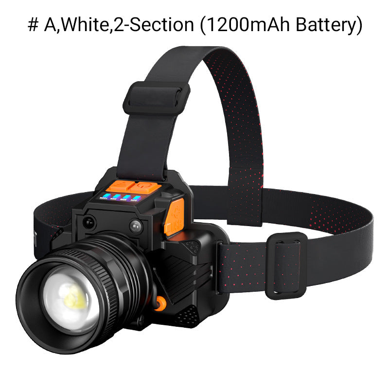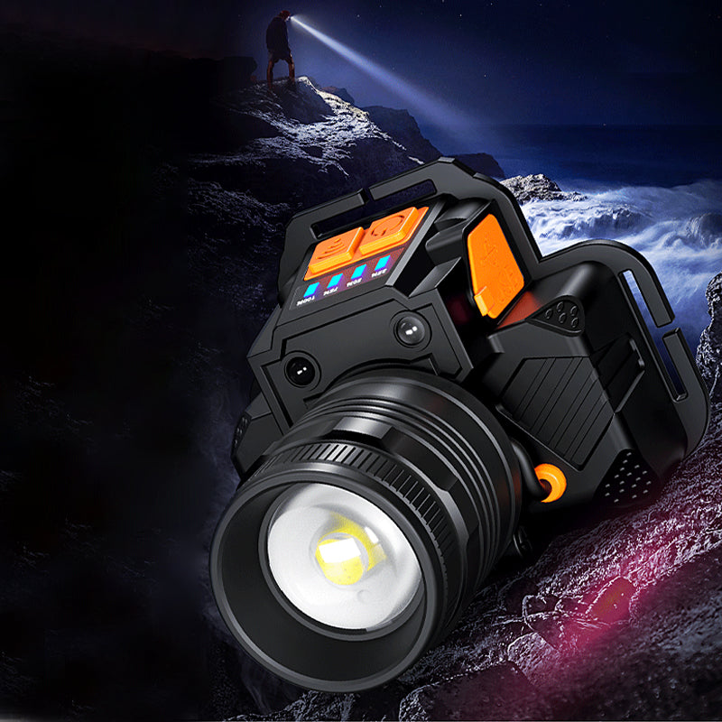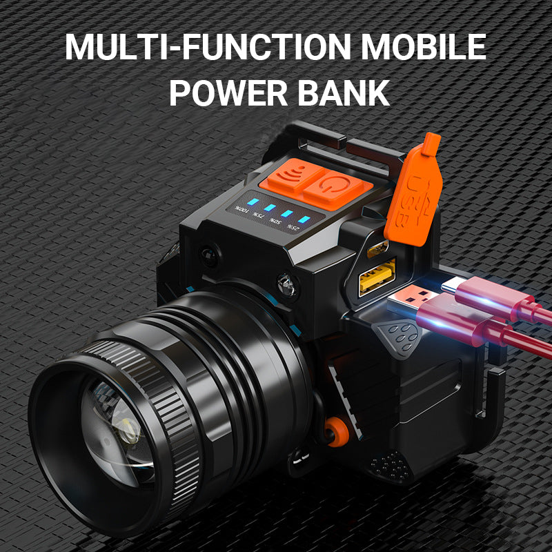 MULTI-FUNCTION MOBILE POWER BANK AND BATTERY DISPLAY: Track battery life easily with the built-in display. The headlamp doubles as a power bank, allowing you to charge phones and devices using its USB output during outdoor activities.
