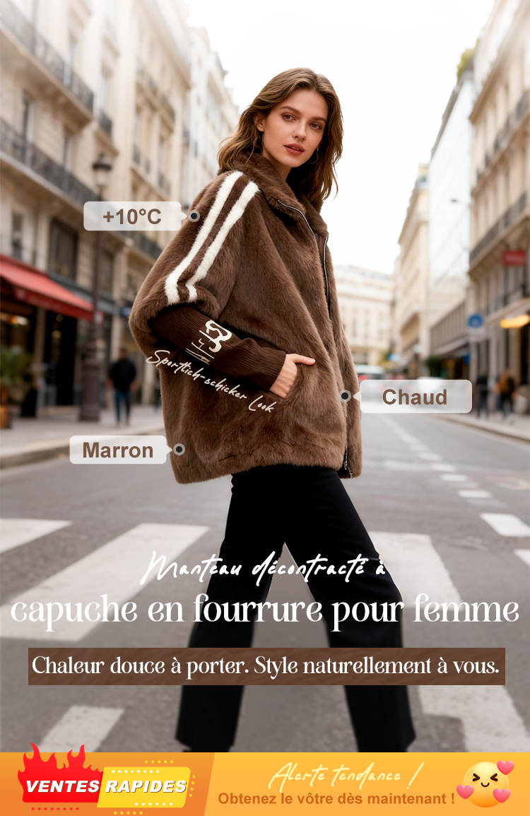 📢📢60% DE RÉDUCTION !!! ✨Manteau Décontracté à Capuche Zippé en Peluche pour Femme